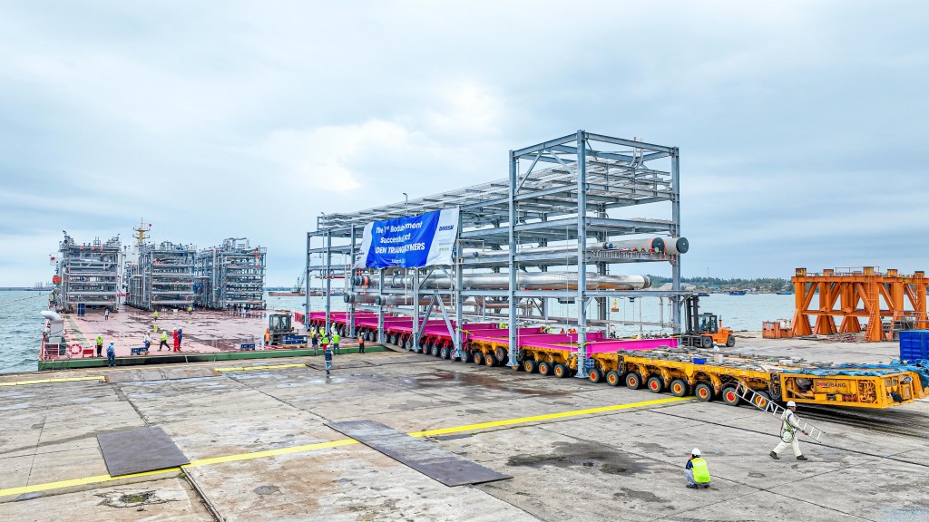 Among the shipped modules, the biggest one is 16.5m high, 55.4m long, 10m wide and weighs 386 tons.